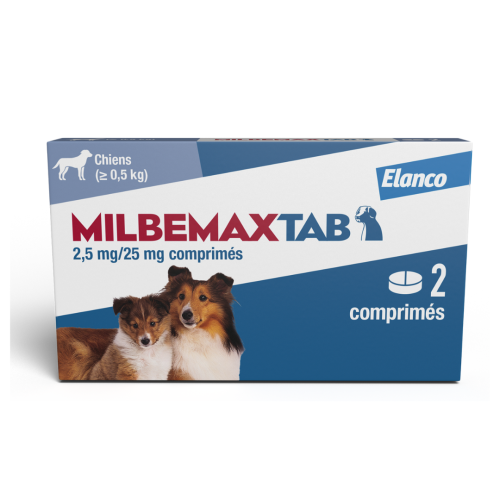 Milbemax Tab chien est un antiparasitaire interne (vermifuge) contre les cestodes et les nématodes des chiens.