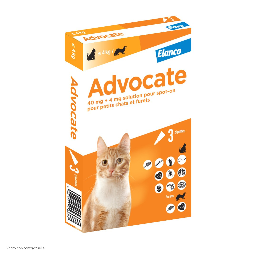 ADVOCATE Petits Chats -4 kg – 3 pipettes de 0,4ml - Elanco