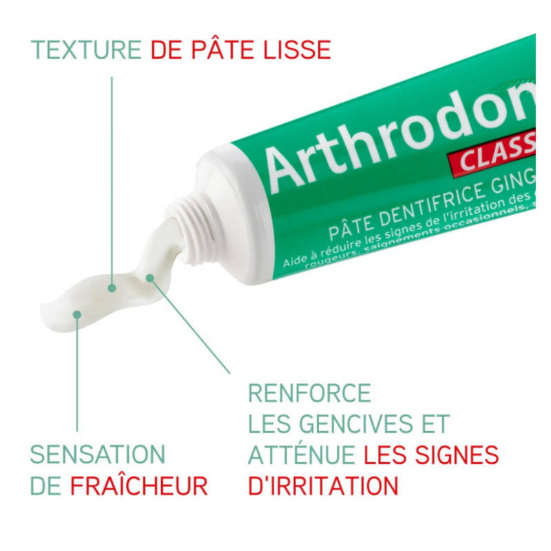 Arthrodont Classic, dentifrice gencives irritées, lot de 2x75ml, apaise et protège les gencives sensibles tout en assurant une hygiène bucco-dentaire optimale.