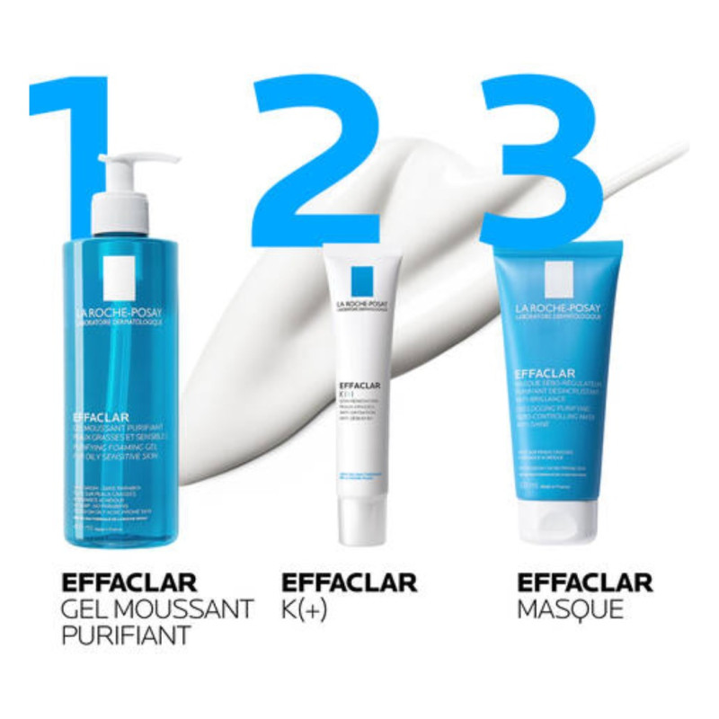 Effaclar K+ est un produit hypoallergénique avec texture aqua-gel fraîche et non grasse et absorption rapide.