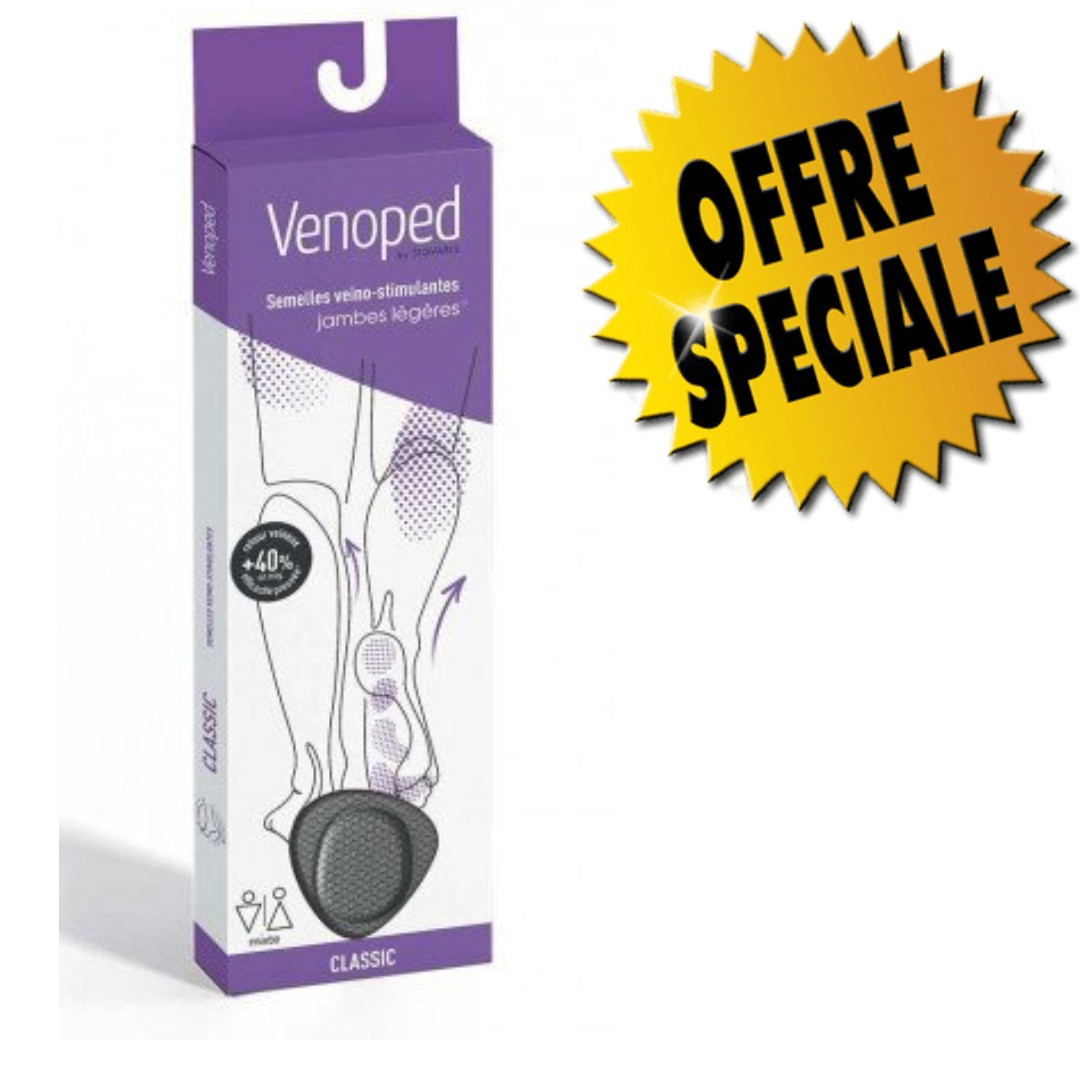 Les semelles Venoped Classic de la marque Sigvaris est un accessoire orthopédique destiné à stimuler la circulation sanguine et redonner du confort aux personnes sujettes au phénomène de jambes lourdes. Elles exercent une pression sur les zones de renfort contribuant à augmenter la vitesse du retour veineux jusqu'au cœur et éviter ainsi la stagnation du sang dans des poches, propices à la sensation de fourmillement à l'apparition de varices. En d'autres termes, elles agissent un peu à la manière d'une pompe favorisant le flux sanguin.