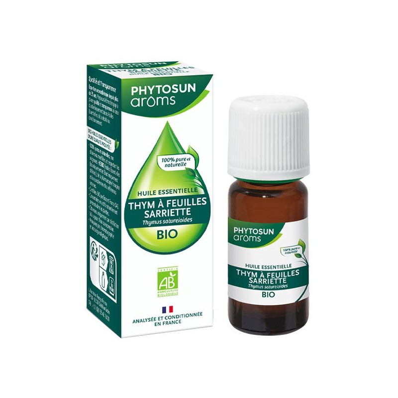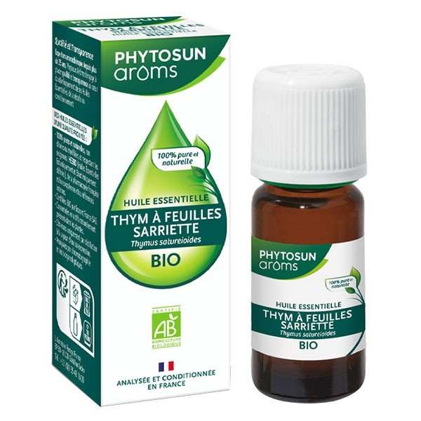 L 'huile essentielle de Thym à feuilles de sarriette Phytosun Arôms est un immunostimulant et un tonique idéal en prévention des épidémies hivernales et épuisement.