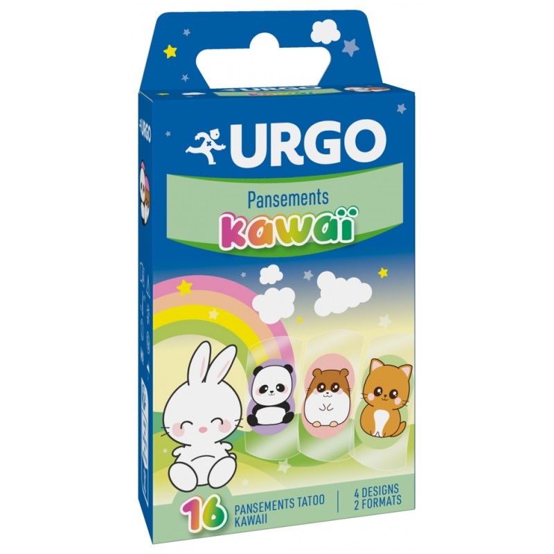 Urgo Pansements Kawaï 16 Pansements sont des pansements prédécoupés pour la protection des plaies superficielles afin d'éviter la contamination et pour absorber les exsudats.