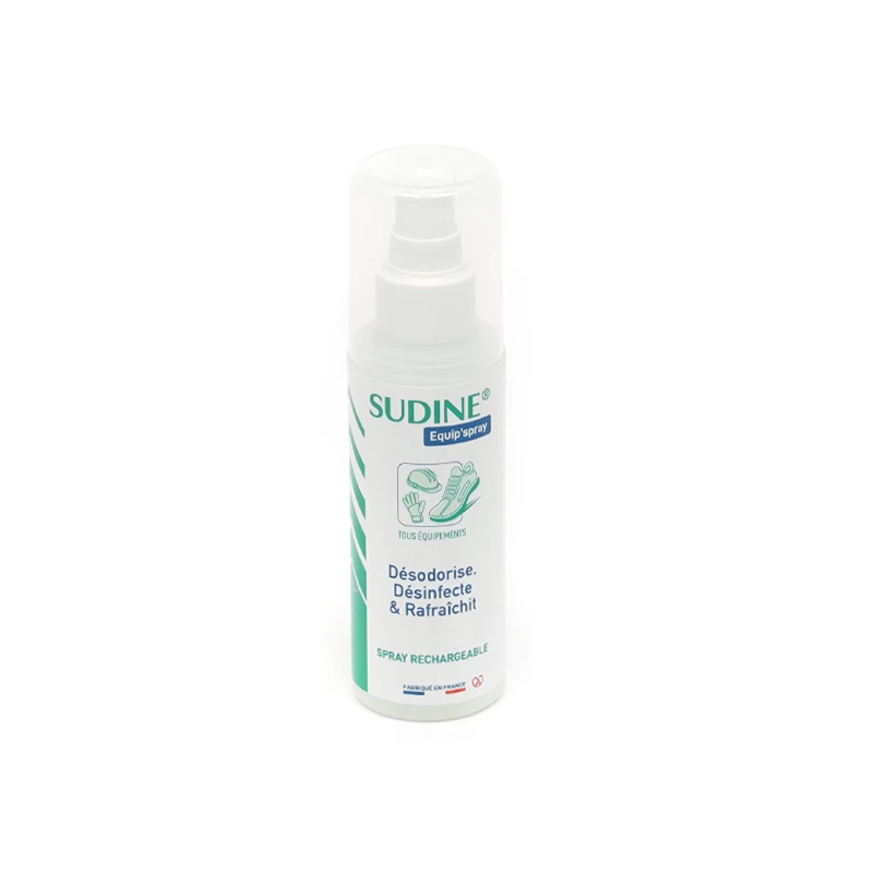 Sudine Equip’Spray élimine 99,99% des bactéries, levures, champignons et virus responsables des infections, des mycoses et des mauvaises odeurs. Il laisse une odeur fraîche et agréable et réduit l'effet de macération.