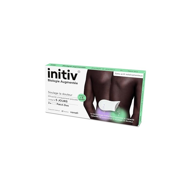 - Le patch Initiv dos est un dispositif médical, réservé à l’adulte, indiqué pour soulager les douleurs musculosquelettiques aiguës (courte durée) d’intensité faible à modérée jusqu’à 5 jours.