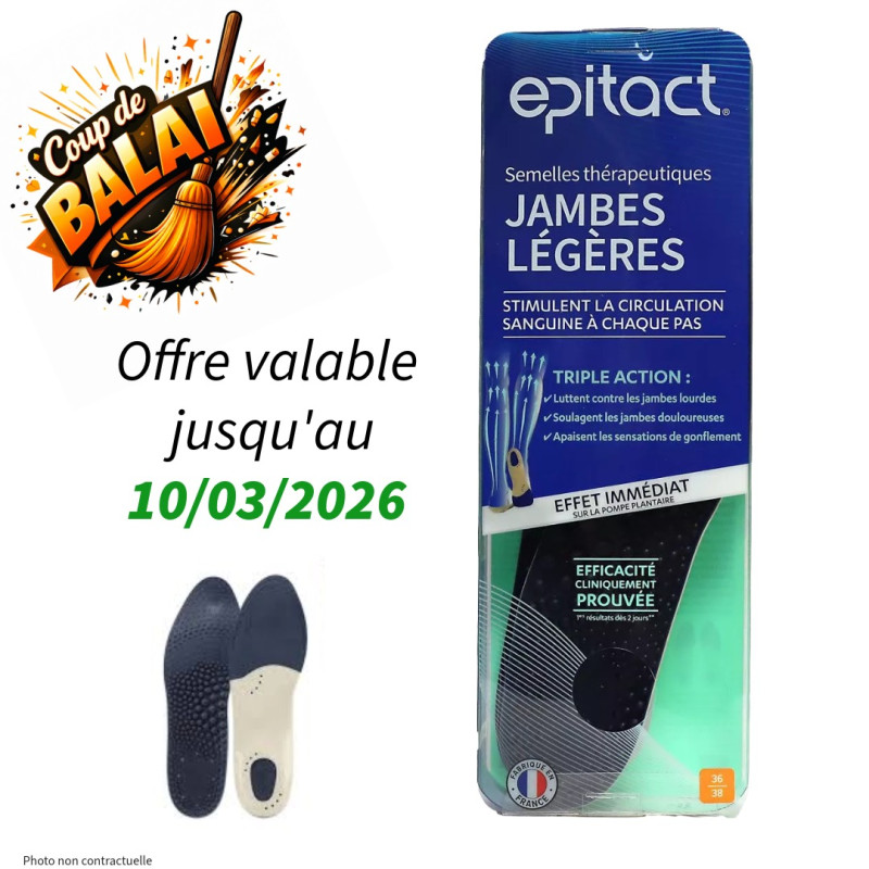 Les semelles thérapeutiques jambes légères EPITACT® sont indiquées en cas de troubles de la circulation sanguine des membres inférieurs, d’insuffisance veineuse et de varices débutantes.