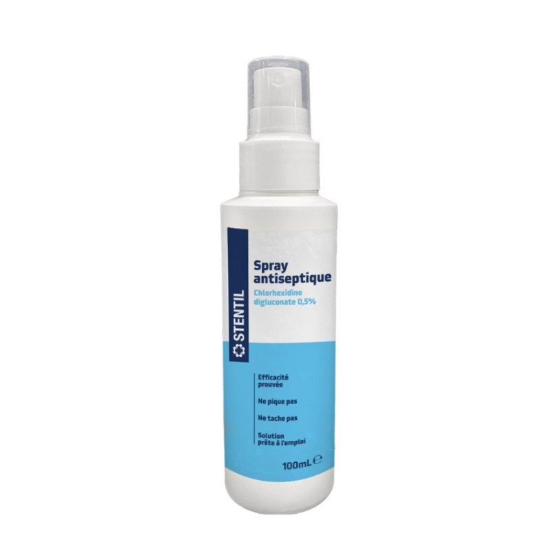 La Chlorhexidine 0,5% Stentil est une solution pour application cutanée destinée à l'antisepsie des plaies superficielles et de faible étendue. Le principe actif de la solution Chlorhexidine 0,5% est le digluconate de chlorhexidine, dosé à 0,5% dans la solution