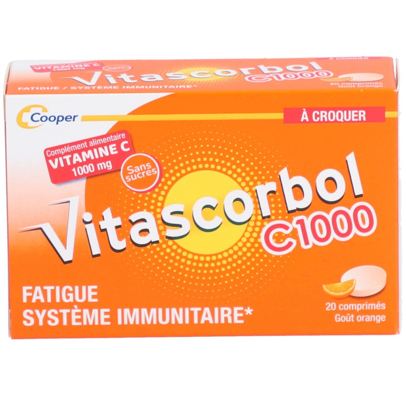VITASCORBOL C1000 A CROQUER - Complément alimentaire Vitamine C - 20 comprimés à croquer - Goût Orange