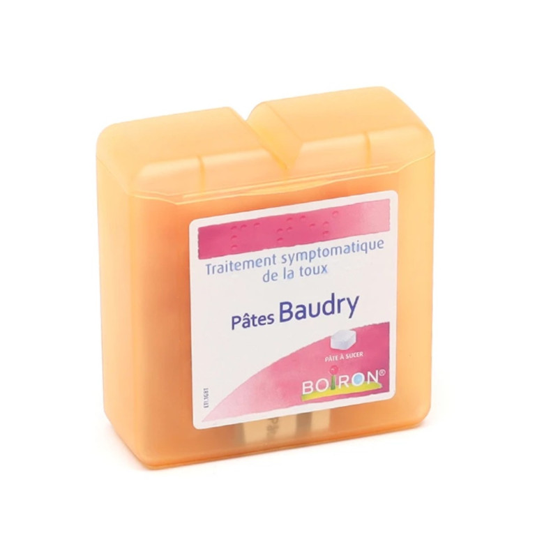 BAUDRY pâtes à sucer BOIRON est un médicament homéopathique utilisé comme adjuvant dans le traitement de la toux notamment sèche.