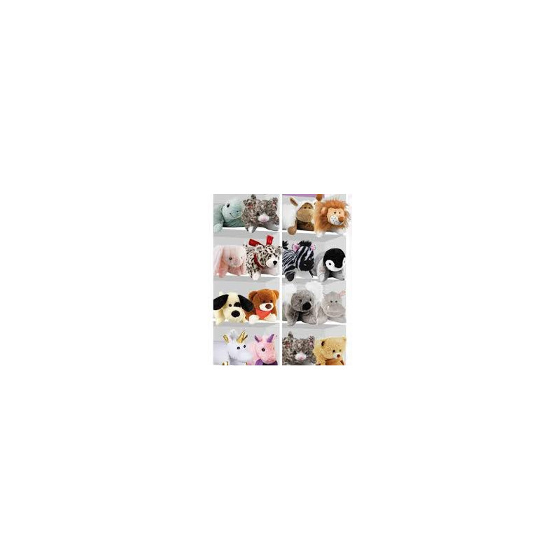 Dimension: peluche env. 33 x 23 x 16 cm; coussin à plat (hors tête): env. 33 x 23 cm