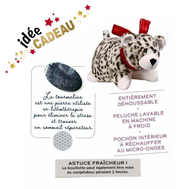 Bouillotte Peluche Coussin Chauffant -Graines de TOURMALINE - Bébé LEOPARD - NOVEX