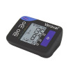 Il s’agit d’un tensiomètre équipé d’un écran d’affichage digital extra large. L’appareil comprend des boutons pour démarrer/arrêter la mesure, ainsi que des boutons de mémoire pour deux utilisateurs distincts. Le bracelet s’ajuste au poignet, et il y a un compartiment à piles pour l’alimentation.