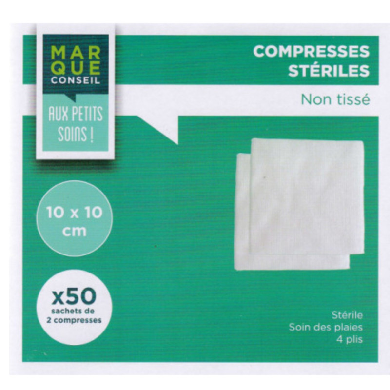 Compresses stériles Non Tissé 10x10 Boite de 50 sachets Marque Conseil