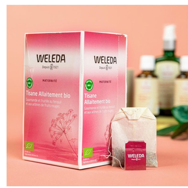 Conditionnée sous la forme de petits sachets, cette tisane allaitement bio de la marque Weleda s’utilise très facilement et s’emporte partout avec vous. Elle diffuse un arôme sucré de fruits rouges qui offrent, de surcroît, un moment de plaisir et de relaxation. Elle se laisse infuser dans une tasse d’eau chaude et participe également à l’apport en eau essentiel pour l’organisme et à la lactation pendant la période d’allaitement.