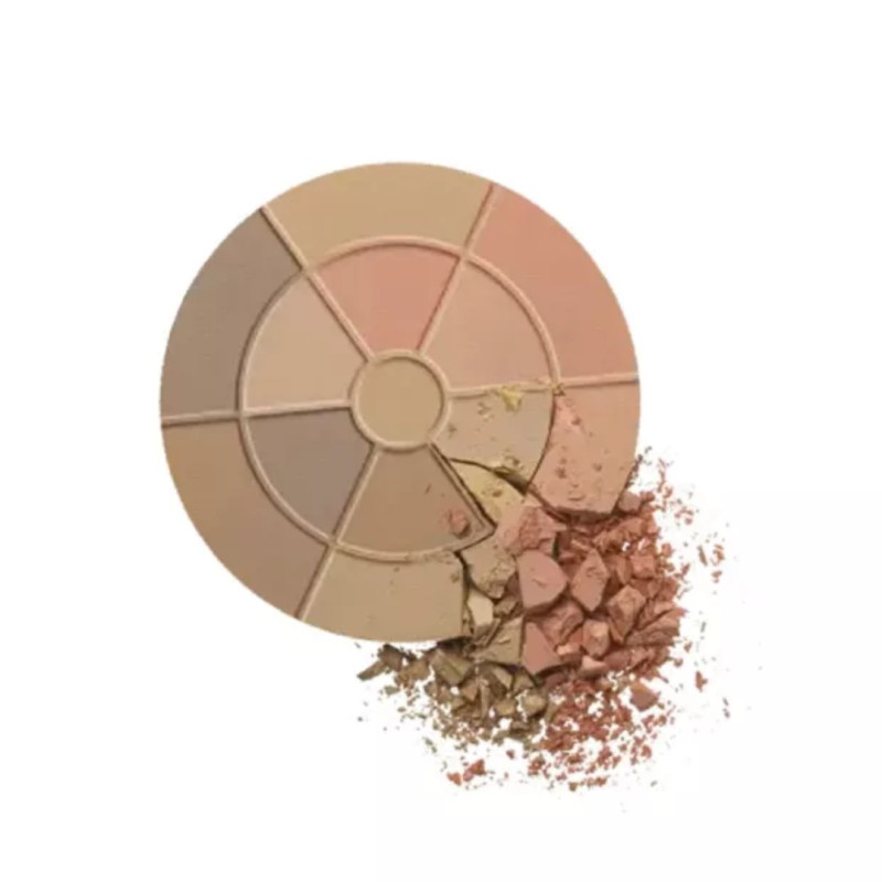 Cette poudre aux nuances brunes et dorées, fixe le maquillage et unifie le teint.