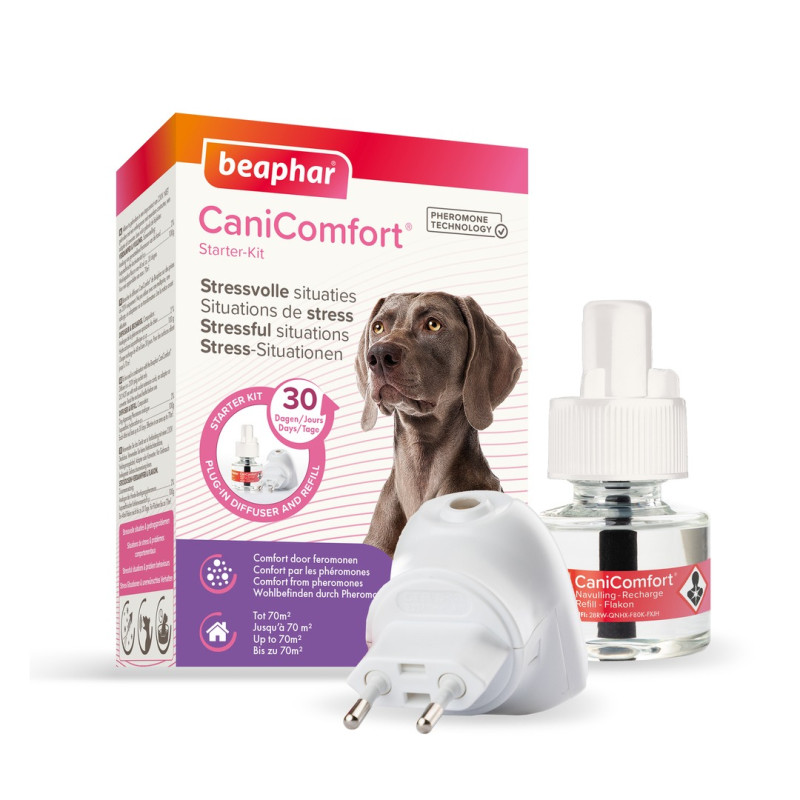 CaniComfort® de Beaphar diffuse un analogue (une copie) de la phéromone apaisante de chien. Elle est naturellement