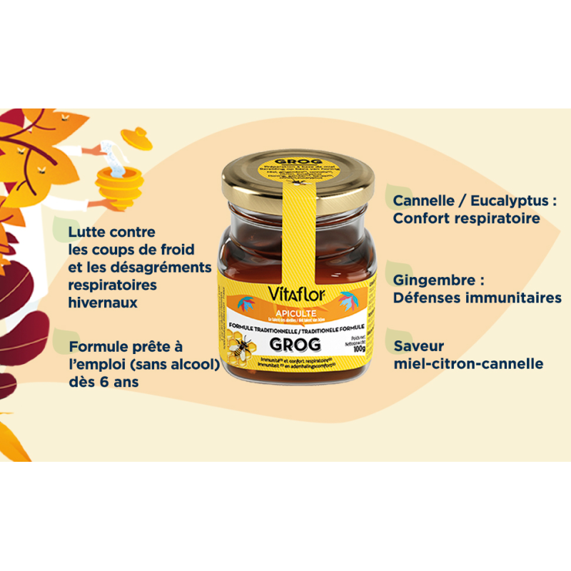 GROG préparation à base de miel - + Immunité - 100 gr - VITAFLOR (Péremption 31.05.2026)
