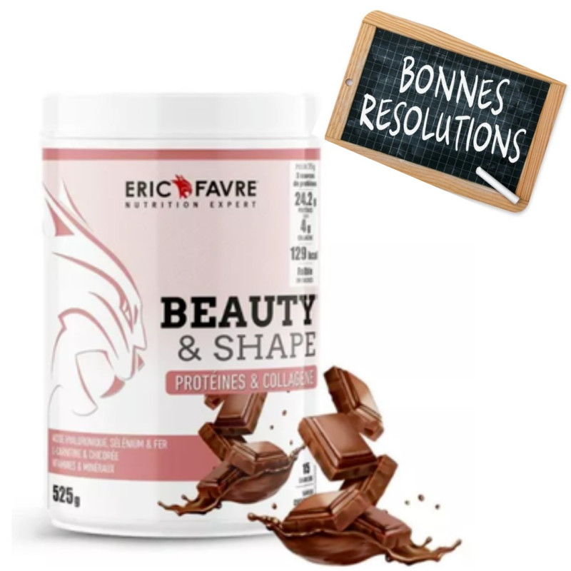 BEAUTY & SHAPE - Protéines et Collagène - Saveur Chocolat - Masse Musculaire et Antioxydants - 525gr - Eric Favre