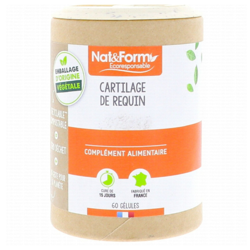 Nat & Form Original Cartilage de Requin 200 gélules est un complément alimentaire à base de cartilage de requin.