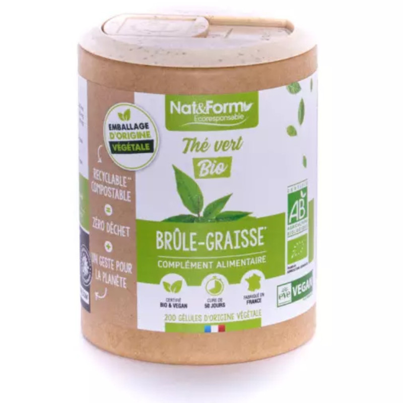 hé vert Bio des Laboratoires Nat&Form est un complément alimentaire utilisé pour stimuler le métabolisme naturel des graisses dans le cadre d'un régime minceur tout en conservant tonus et vitalité.