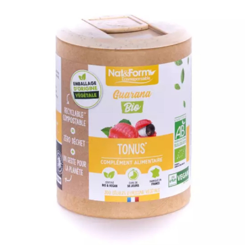 Guarana Bio des Laboratoires Nat&Form est un complément alimentaire qui contribue à la vitalité par l’apport en caféine et à l'élimination des graisses stockées par l'organisme.