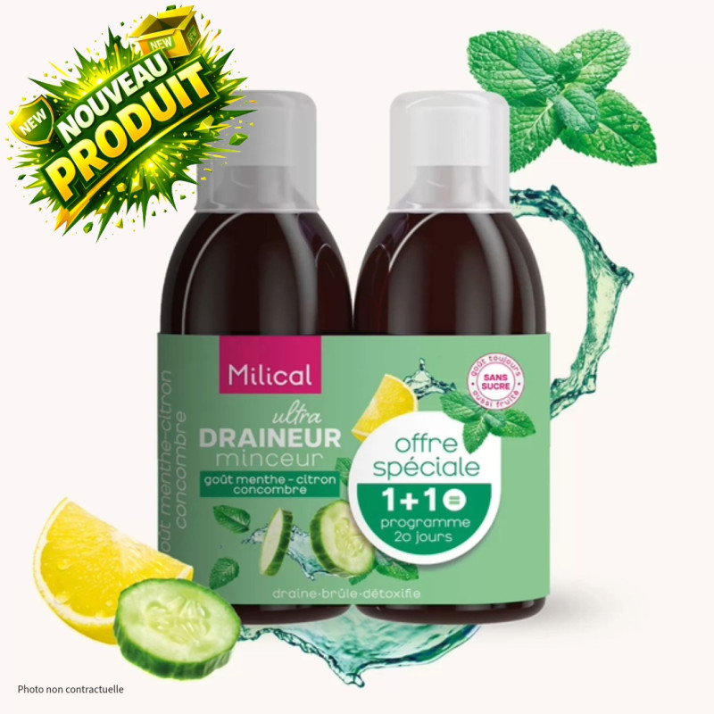 DRAINEUR ULTRA MINCEUR- menthe citron concombre - 2X500 ml - Milical