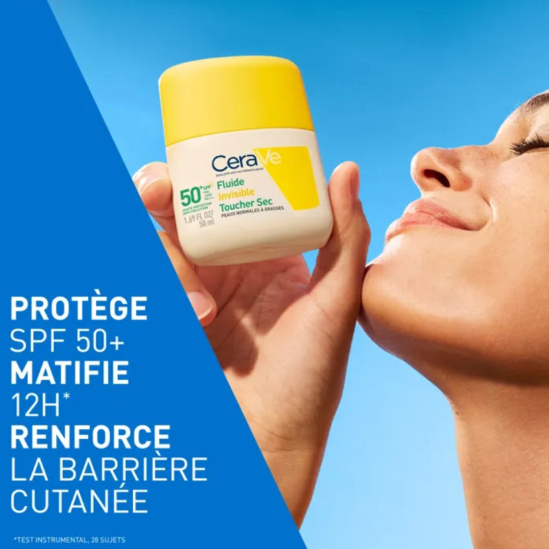 FLUIDE SOLAIRE Invisible Toucher Sec SPF50+ Haute Protection - 50ml - Cerave