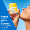 Formule haute protection enrichie en niacinamide matifiante, vitamine E antioxydante et 3 céramides essentiels. La Technologie MVE assure une hydratation continue tout en renforçant la barrière cutanée pendant et après l'exposition au soleil.