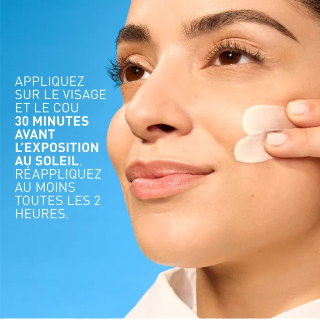Appliquer généreusement sur le visage et le cou 30 minutes avant l'exposition au soleil.