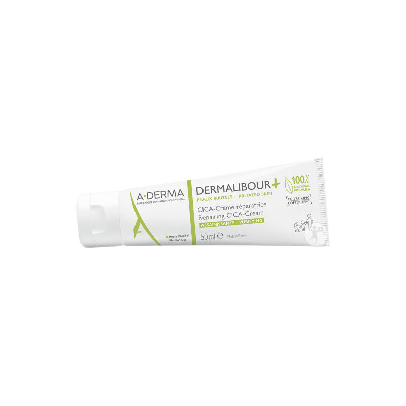 A-DERMA Dermalibour+ CICA - Crème Réparatrice Assainissante 50 ml est un soin naturel conçu pour apaiser les irritations et rééquilibrer la peau. Enrichie en Cuivre-Zinc assainissant et en extrait de Plantules d'Avoine Rhealba, elle calme instantanément et stimule la réparation rapide de la peau. Sa texture hydratante et nourrissante procure un confort optimal.