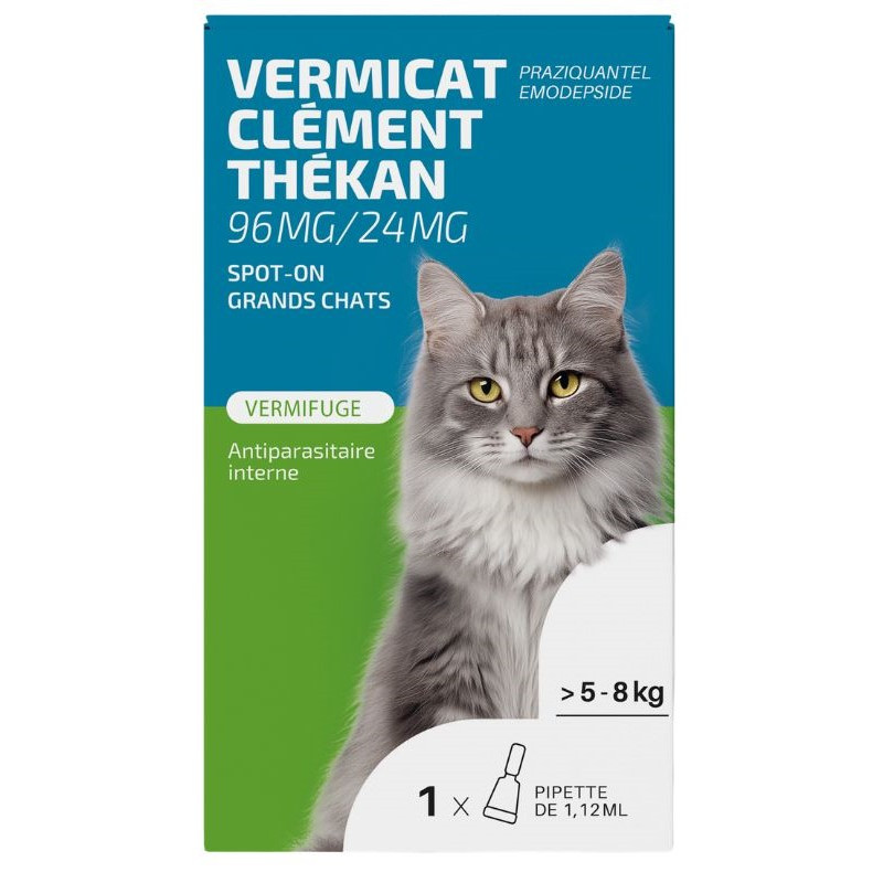 Clément Thékan commercialise Vermicat, un nouveau vermifuge en pipette pour chat à base de praziquantel et emodepside sur ordonnance.